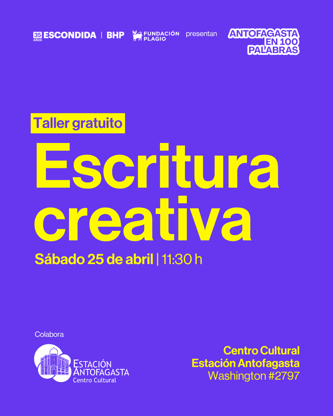 “Antofagasta en 100 Palabras” es un concurso de cuentos breves presentado por Escondida | BHP y Fundación Plagio, que invita a escribir sobre la vida en la Región de Antofagasta.